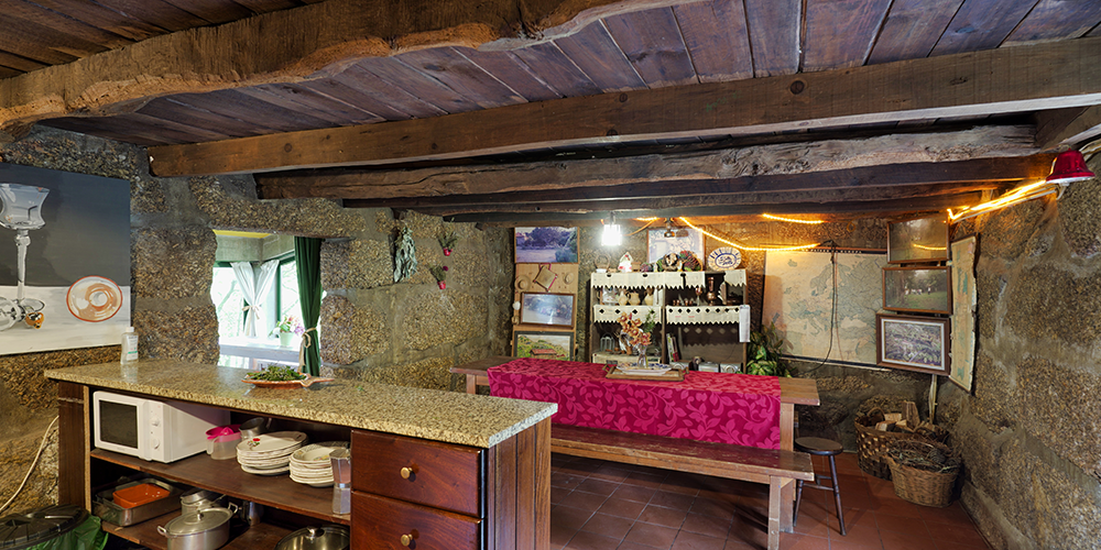 -Cozinha completamete equipada + sala comum, dispõe de fogão a gás (4 Bicos) e fogão a lenha com forno, bem como micro-ondas e frigorífico.
